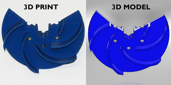 The images above show an actual 3D printed part compared to the 3D CAD model used to create this part. The 3D model is made from ASA T16 Blue. SolidWorks was used to create the 3D CAD model.
