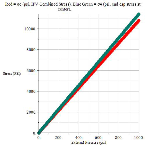 Using MapleSoft and Roark's Formulas for Stress and Strain to calculate IPV stress is quicker than creating a SolidWorks model of the IPV and subjecting it to a FEA analysis. This method is useful when quick estimate of IPV stress is needed without the rigor of an FEA analysis. The stress values shown below at 1000 psi are in agreement with the FEA analysis results.