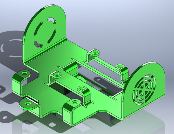 When bending sheet metal, sheets of metal are bent with the help of dies or press brakes. Repeated bending is used for complex shapes. Bending can also be done through a set of rollers. An example sheet metal PAR Bracket is shown below. Drawings of this Bracket can be seen by clicking on the text or SolidWorks icon to the right side of this page.