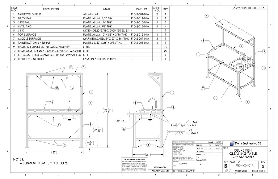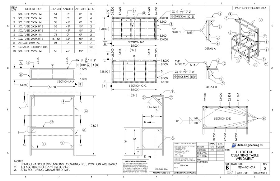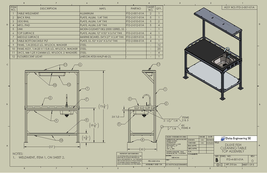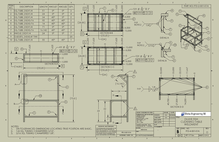 Deluxe Fish Cleaning Table CAD Weldment Drawings